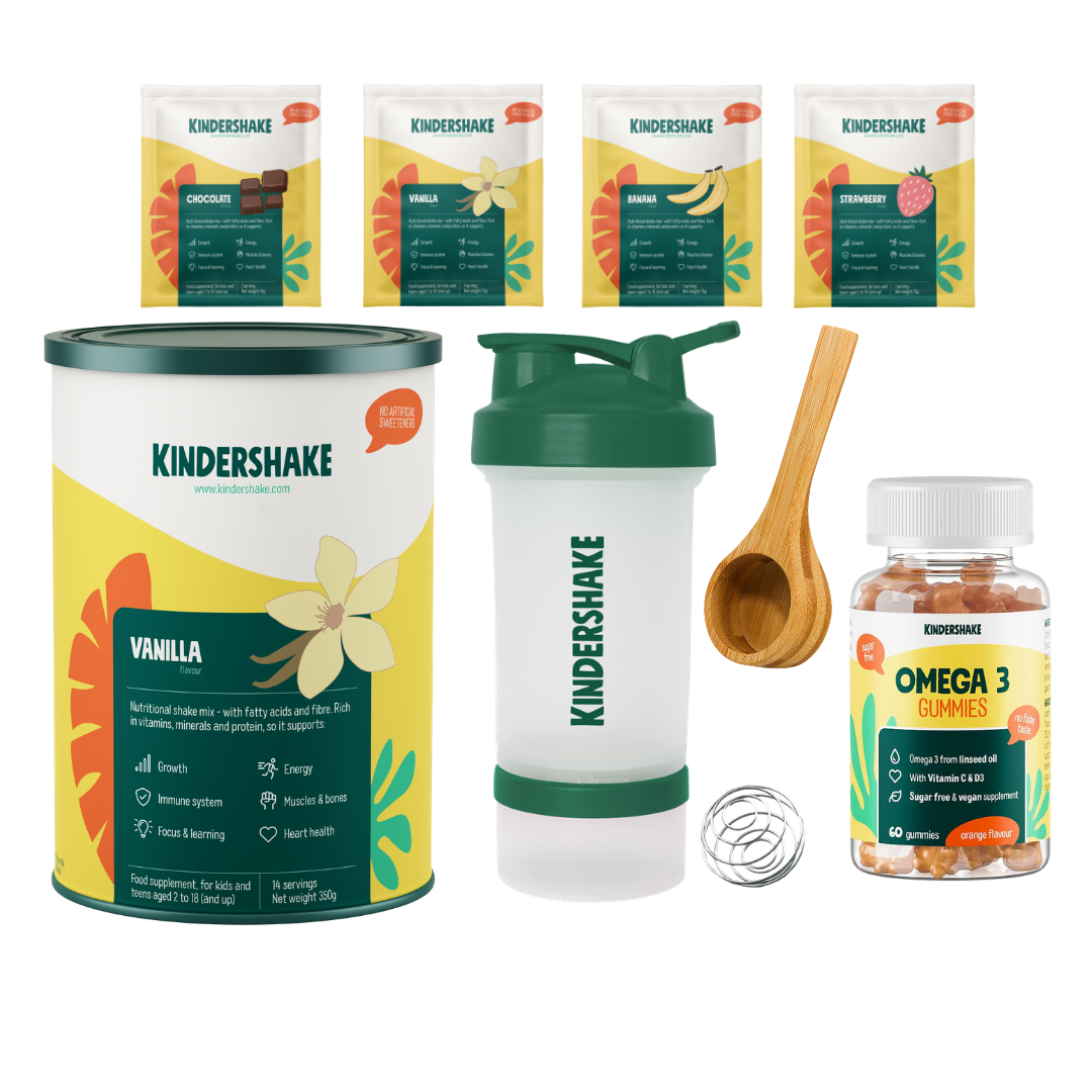 You can give Kindershakes at any time, whenever it suits you and your child: at breakfast, after school, as a dessert, around sports activities, etc. Maximum 1 serving per day.