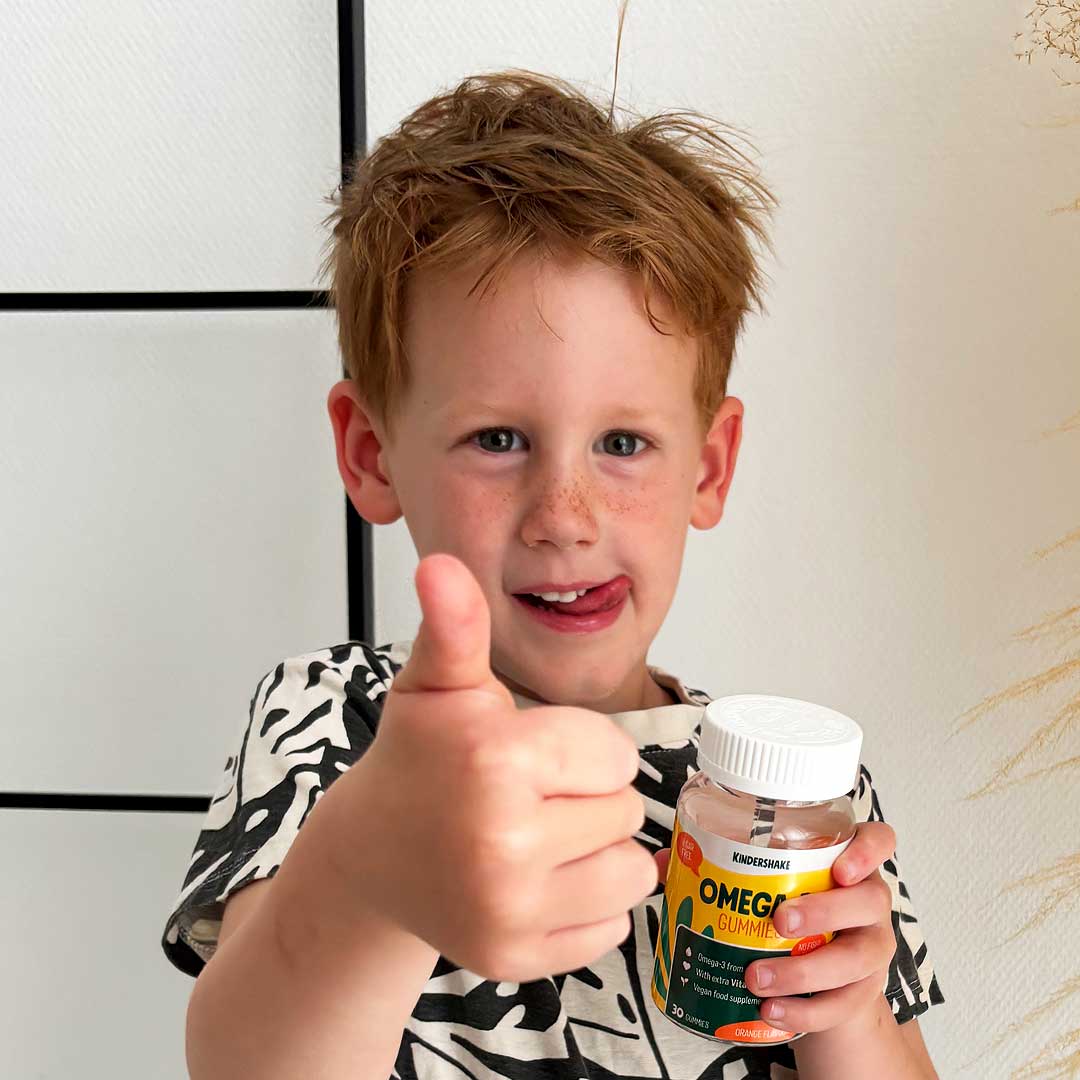 Met Kindershake Omega 3 Gummies krijgt jouw kind op een prettige manier extra vitamine C, vitamine D en omega-3 vetzuren binnen.